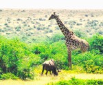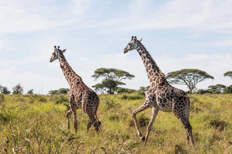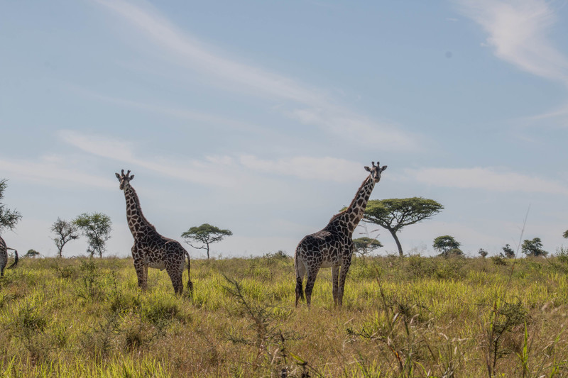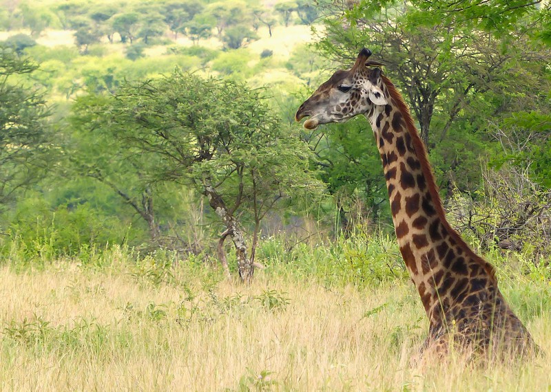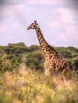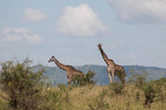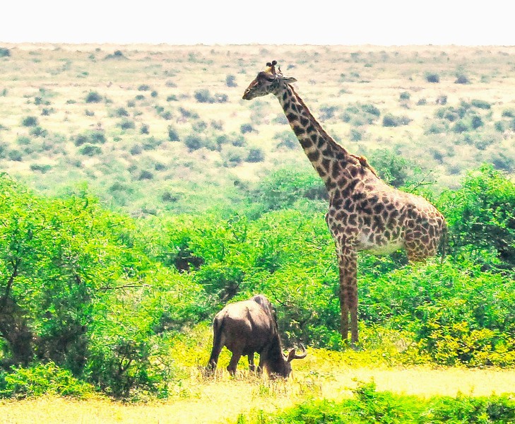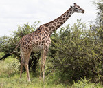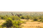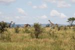 Although they did seem to have 'gangly' legs, they were able to travel at some speed, but with a graceful gait. I noticed one giraffe looking at us over a bush, while another has its head reaching into the bushes to feed, on reviewing the shot, it looks like 'one giraffe' with a seriously long neck...... brought a smile to my face....